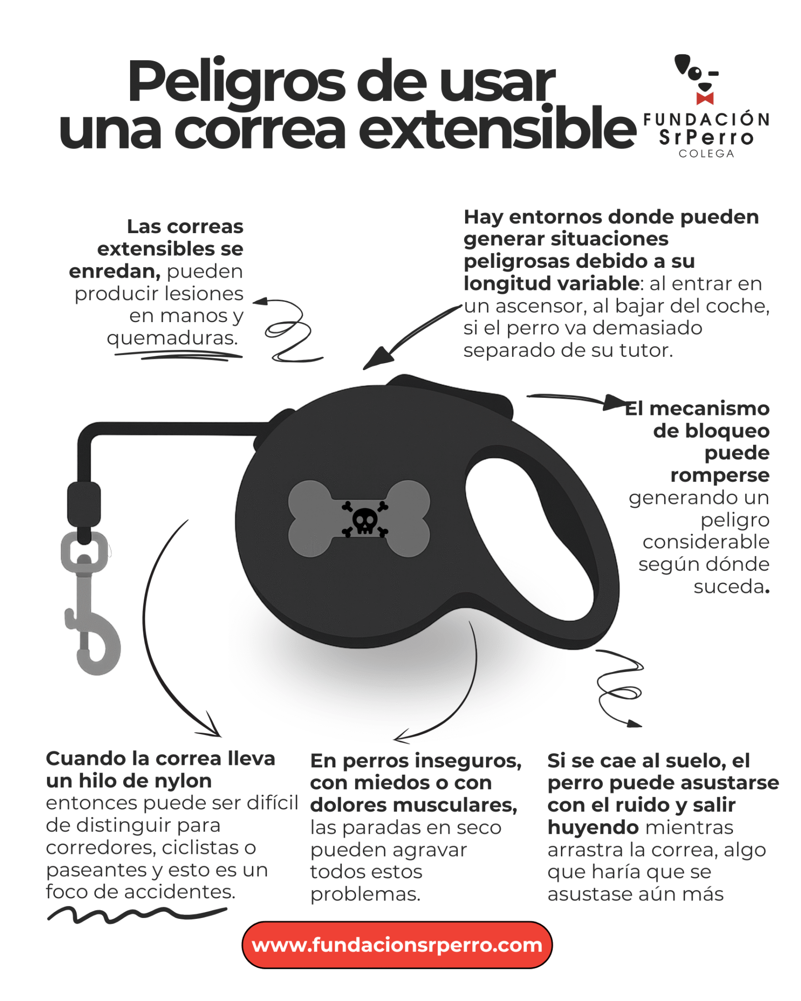 Peligros de usar una correa extensible